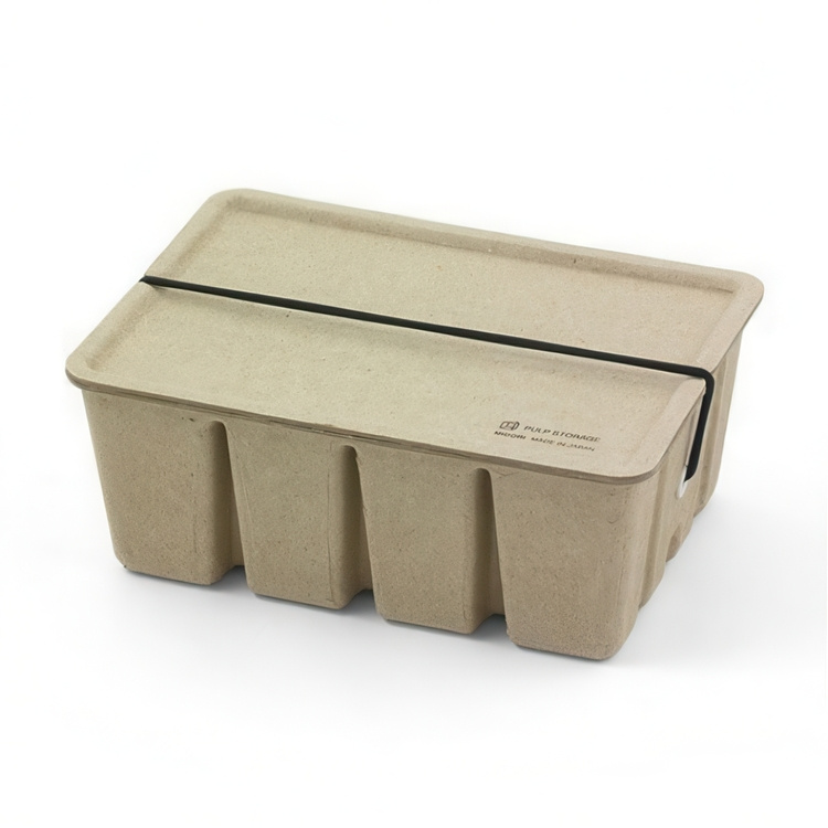 Japansk Ask av återvunnen papp, MIDORI PULP CASE, 12 x 16,7 x H 7 cm, Beige