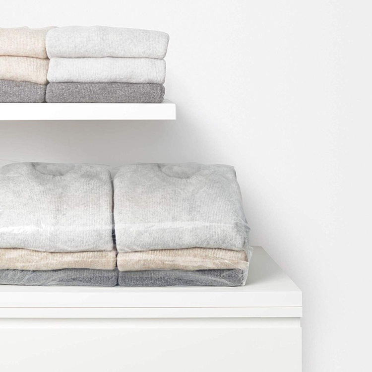 Lägg dina tröjor som inte används dagligen i påsar så är de skyddade mot mal och damm.