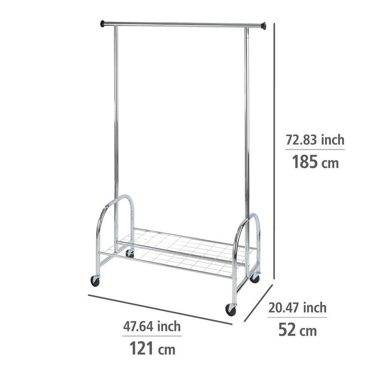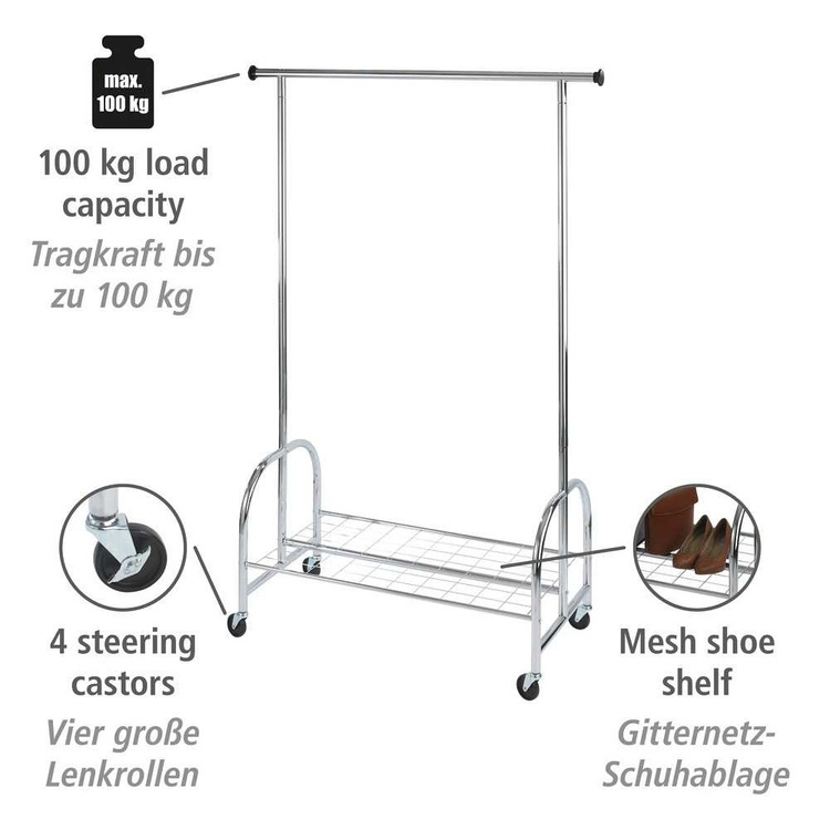 Klädställning med hjul, PROFI, 121 x 52 x H 185 cm, Silver