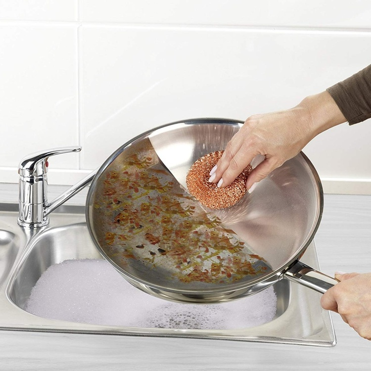 Tre stycken kopparsvampar för en mjuk, repfri borttagning av smuts.