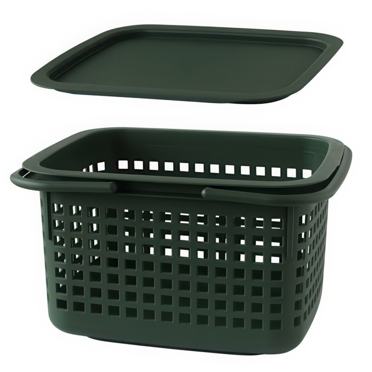 Korg med Lock, från Japan, 23 L, CESTINO MEDIUM, 42 × 35 × H 25 cm, Grön
