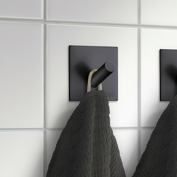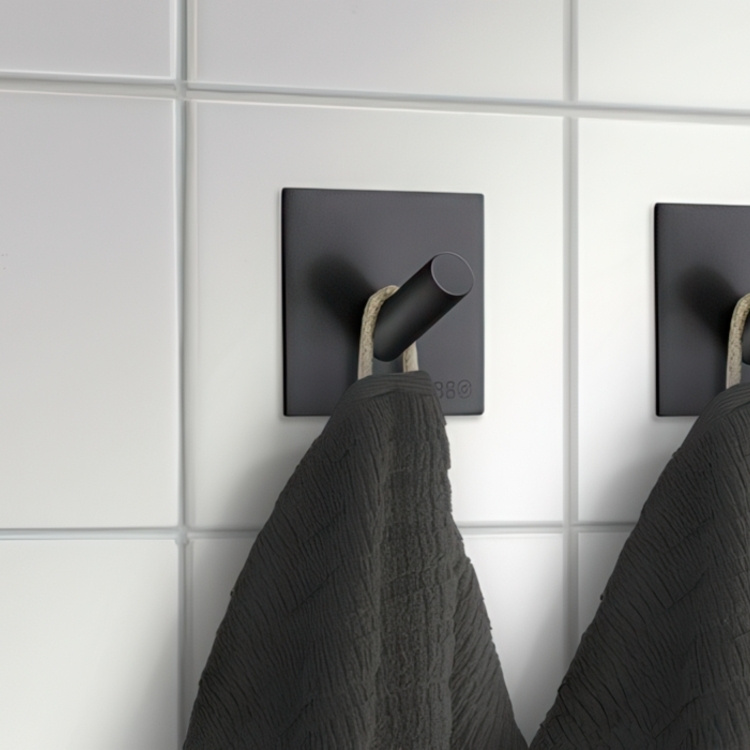 Självhäftande fyrkantig enkel krok i kromat rostfritt stål. Enkelt och snabbt! Sätt upp en krok och få snygg ordning. Med bra självhäftande klister på kroken behövs inga verktyg! -