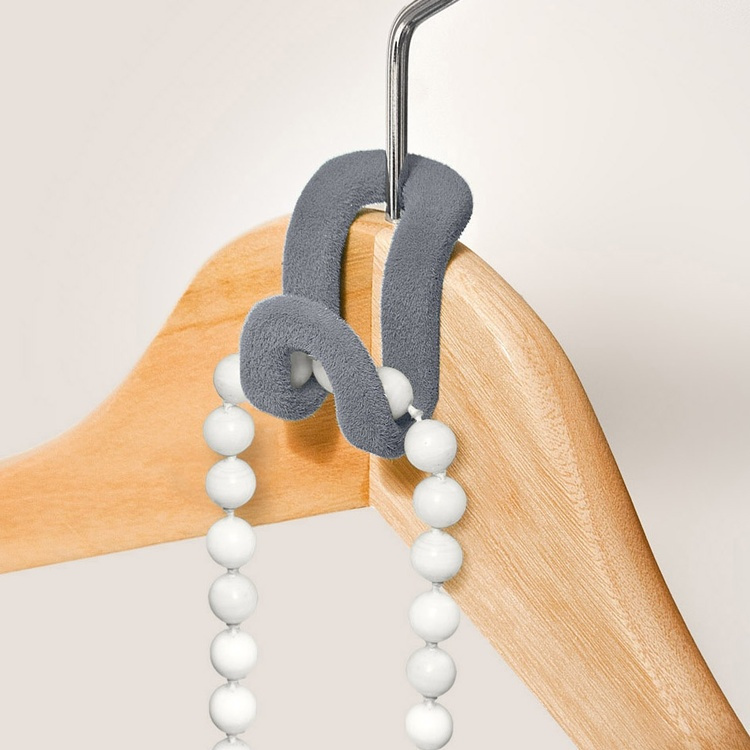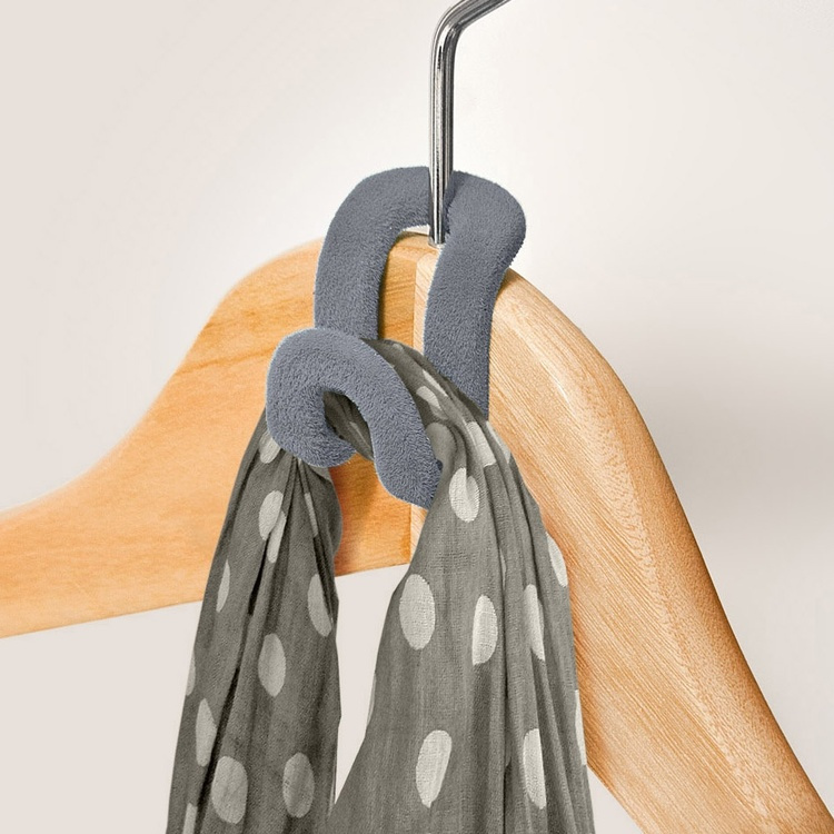 Krokar för galgar, 8 st, VELVET CASCADE HOOKS, Anti Slip, Grå