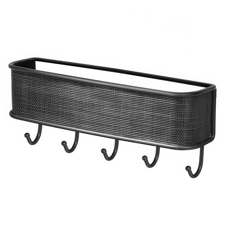 Glöm aldrig nycklarna när du är väg ut genom dörren. Smart och funktionell postställ med fem stycken krokar. Perfekt för hallen. Plats för posten, mobiltelefon, solglasögon eller nycklar. En praktisk skena med fem krokar för t ex nycklar eller kökshandduken. Skruvas fast på väggen. Skruvar medföljer. -