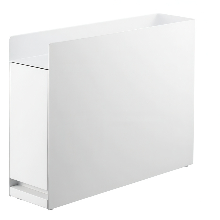 Långsmalt litet skåp i metall för köksbänken.