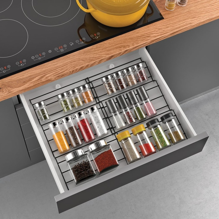 Kryddställ i metall, för låda, LAVA X-PAND, 26~51 x 47 x H 3 cm, Svart