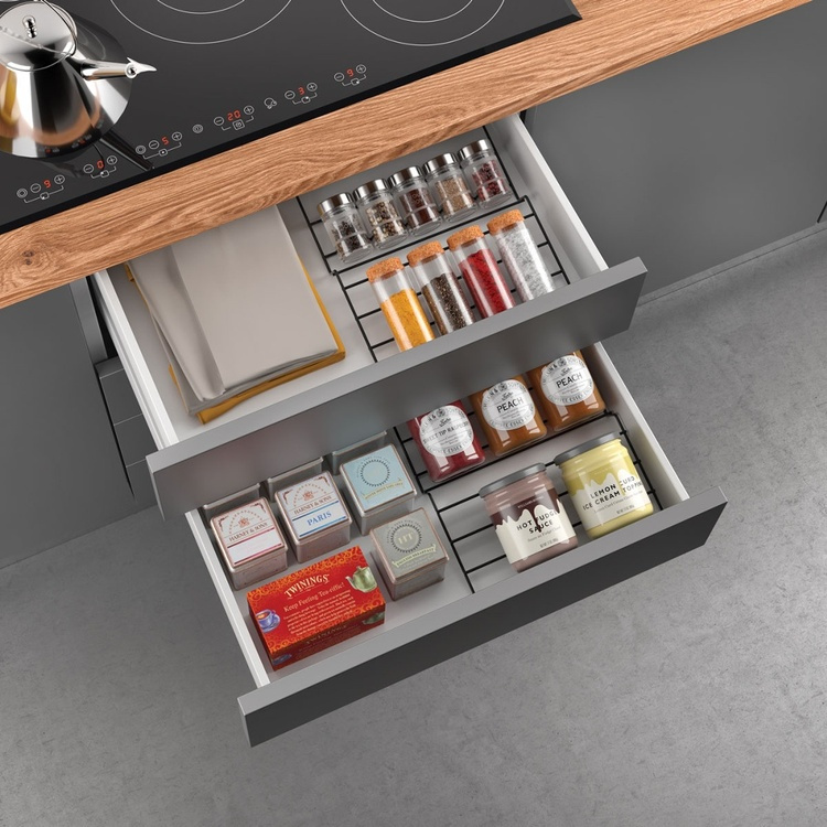 Kryddställ i metall för lådor. Två delar och tre nivåer.