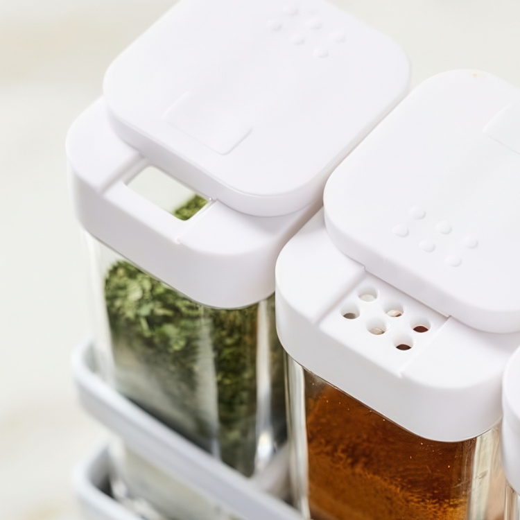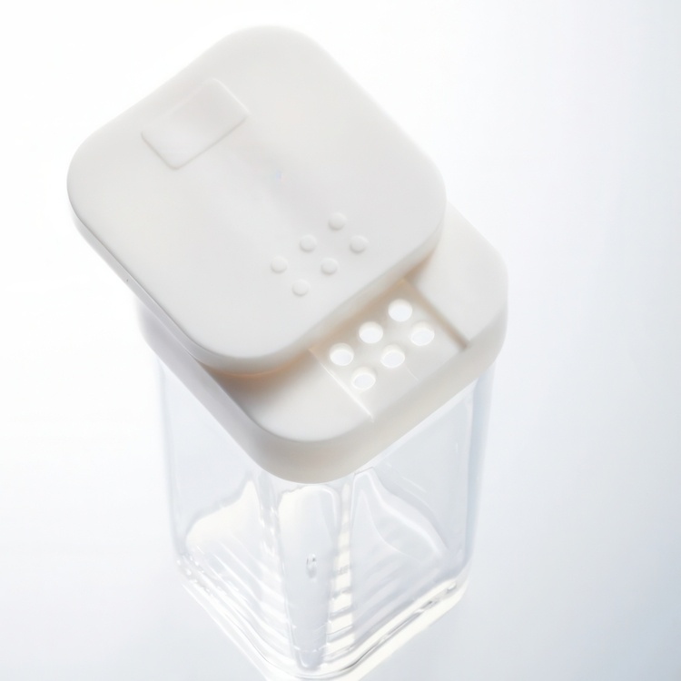 Kryddburkarna är i akryl. Du kan välja mellan ett stort hål att hälla ur eller småhål.