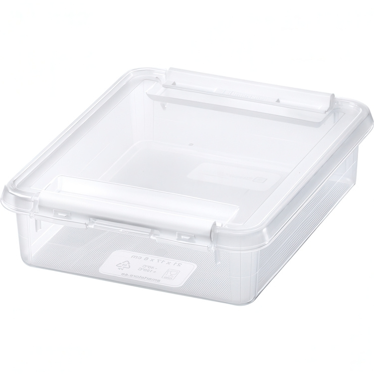 Artnr: 41719 Lagersaldo: 9 Bredd: 17.0 Djup: 21.0 Höjd: 6.0 Material: BPA-fri plast Volym: 2142.0 Färg: Transparent / Vit