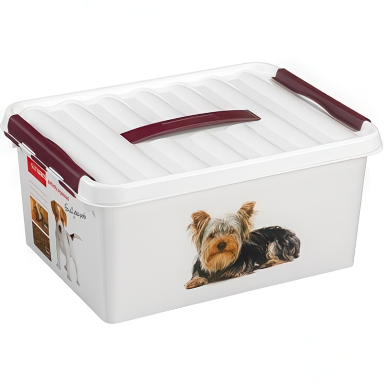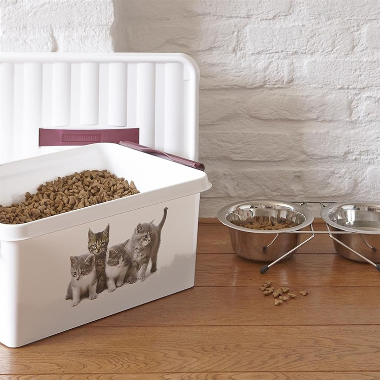Låda för Djurfoder med handtag, 15 L, PET STORAGE MEDIUM, 40 x 30 x H 18cm, Vit / Vinröd