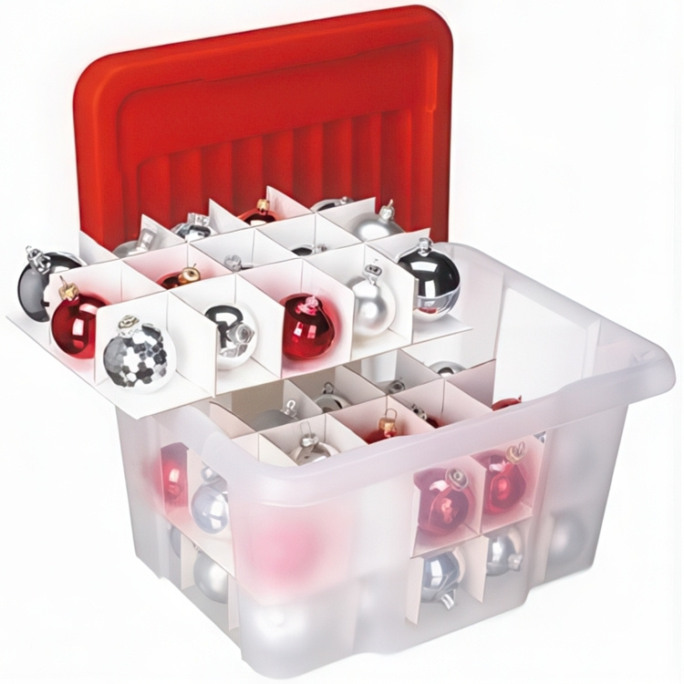 Förvaringslåda med fack i kartong för 45 normalstora julkulor (Ø4,5-6 cm) eller annat pynt som man vill förvara säkert.