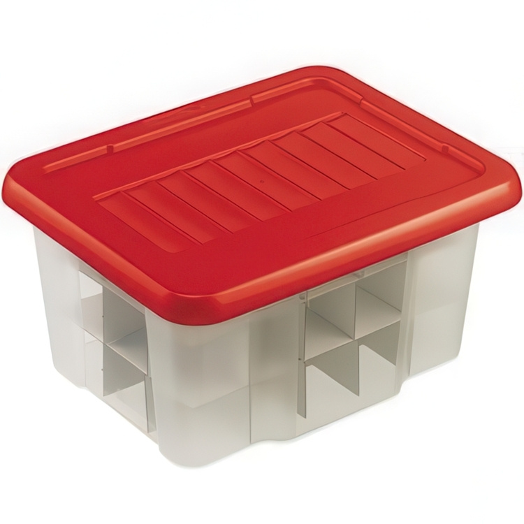 Låda för julpynt, 24 Liter, X-MAS BOX, 43 x 34,5 x H 22,5 cm, Klar / Röd