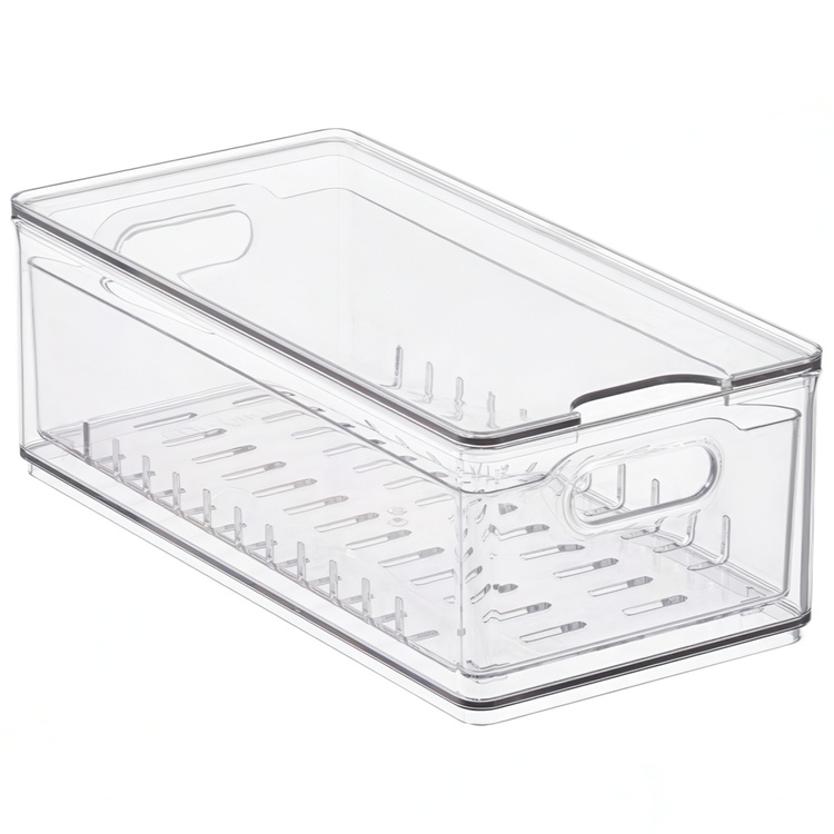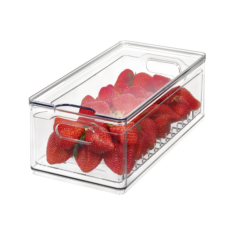 Låda för kylen, med lock och durkslag, THE HOME EDIT LARGE BERRY BIN, 15,2 x 30,5 x H10,8 cm, Transparent
