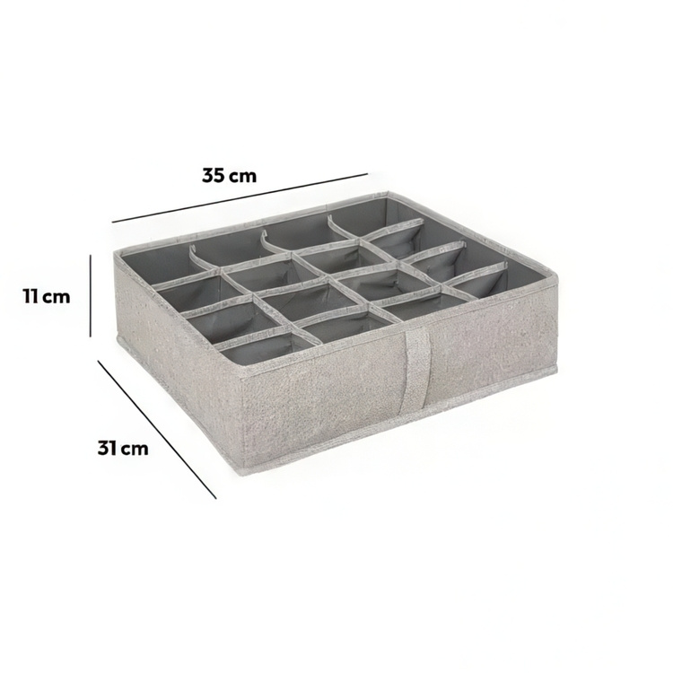 Låda för sortering, 16 fack, ORGA DRAWER ORGANIZER, 35 x 31 x H 11 cm, Beige - Grå