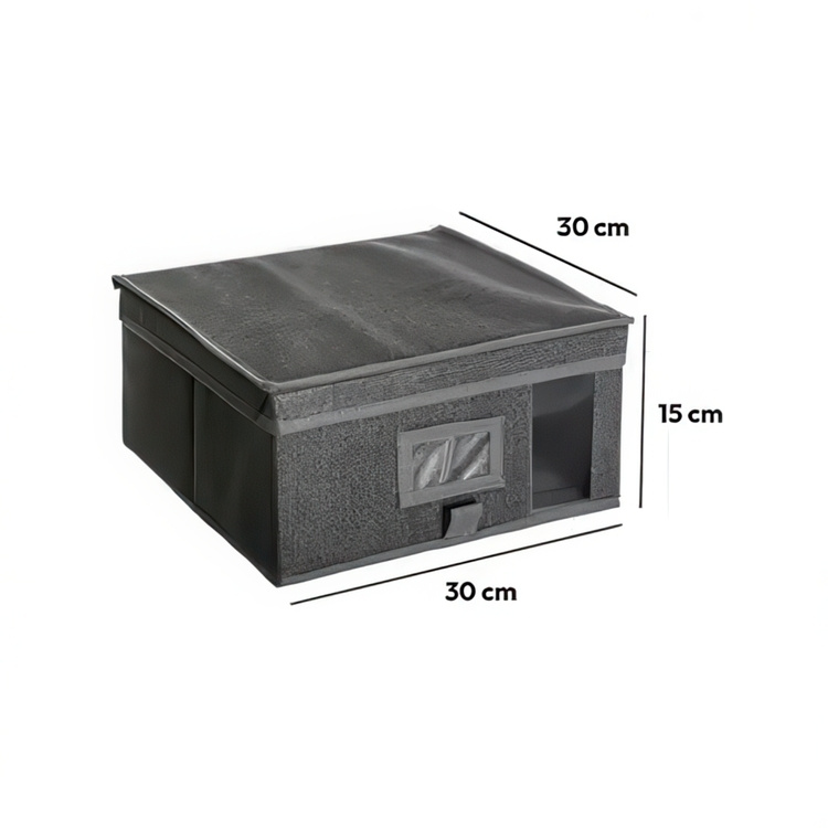 Låda i tyg med lock, ORSO STORAGE BOX SMALL, 30 x 30 x H 15 cm, Mörkgrå