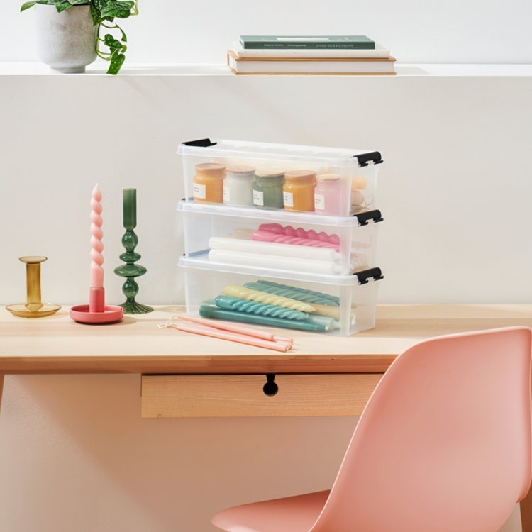 Perfekt för att förvara små artiklar så som kosmetik, stearinljus, pennor etc.. Förvaringsboxarna kan staplas ovanpå varandra när de har locket på.