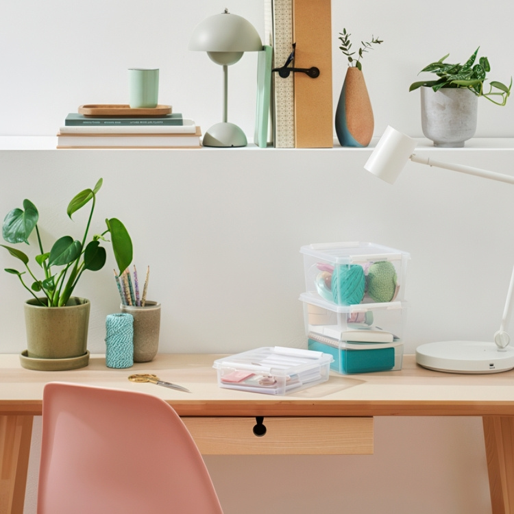 SmartStore Home är ett flexibelt förvaringssystem med hållbara, stabila boxar med lock och en säker låsning i clipshandtaget. Dessutom är lådorna stapelbara.