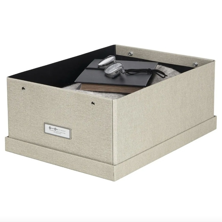 Låda med etiketthållare, BIGSO KATIA CANVAS, 39 x 28,5 x H 16 cm