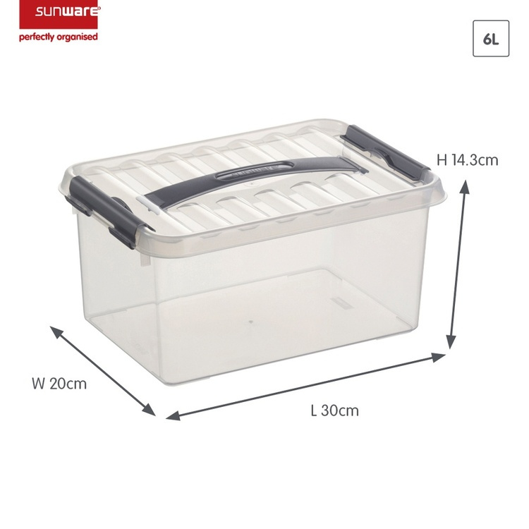 Låda med handtag, 6 Liter, Q-LINE BOX, 30,7 x 20 x H 14,3 cm, Klar / Silvergrå