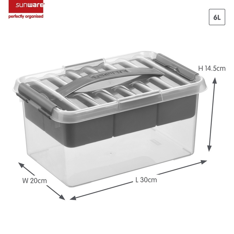 Låda med insats och handtag, 6 Liter, Q-LINE MULTIBOX, 30,7 x 20 x H 14,3 cm, Klar / Silvergrå