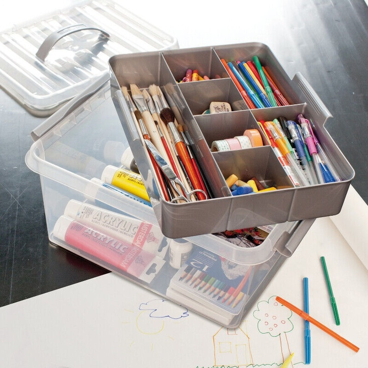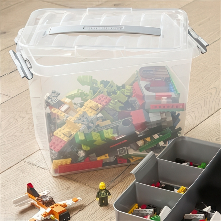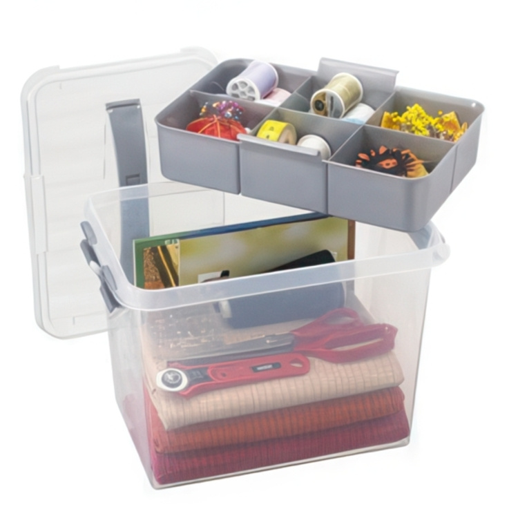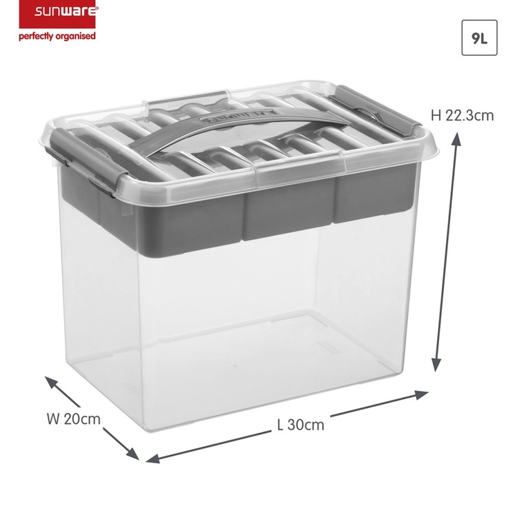 Låda med insats och handtag, 9 Liter, Q-LINE MULTIBOX, 30,7 x 20 x H 22,3 cm Klar / Silvergrå