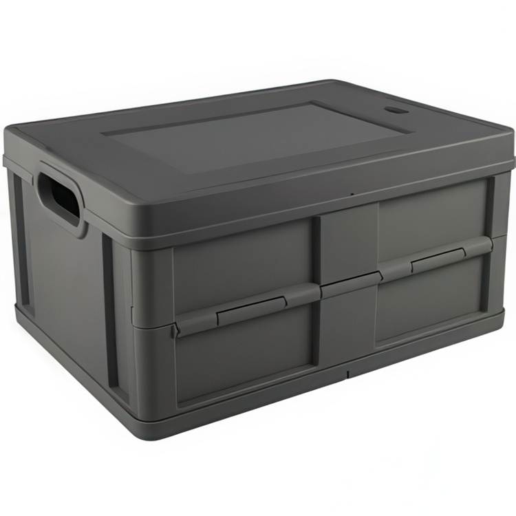 Stor och praktisk låda med lock som enkelt fälls ihop när den inte används