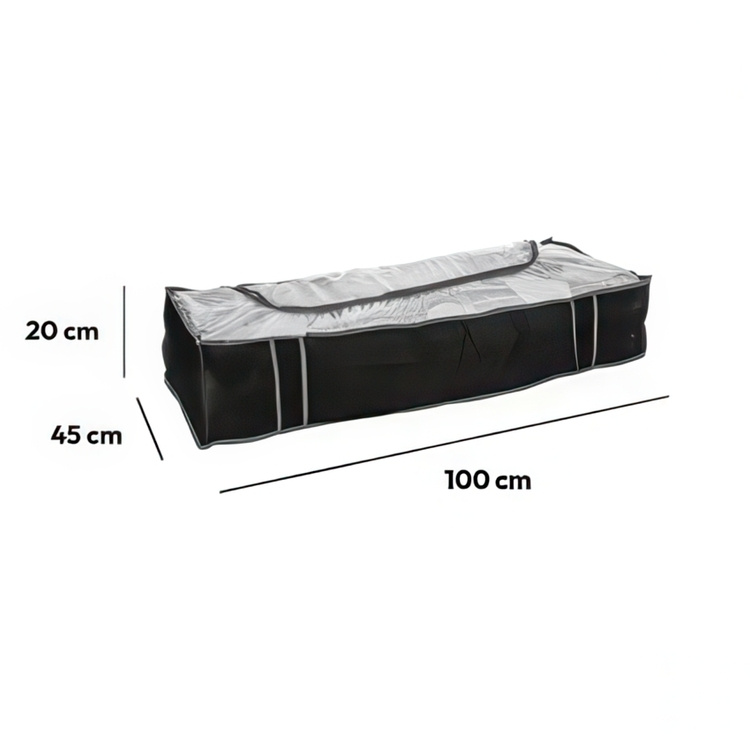 Låda under sängen, Mjuk, DRESSY LARGE, 100 x 45 x H 20 cm, Svart / Klar