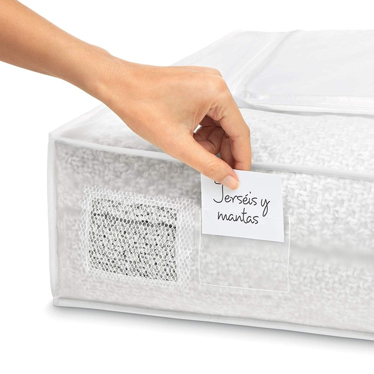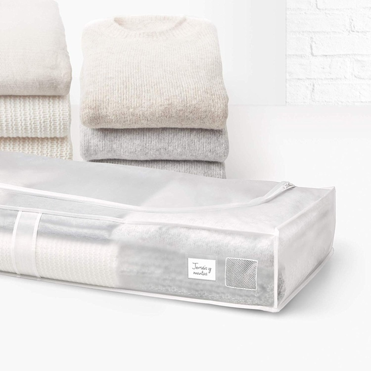 Smart under-säng-förvaring för kläder, filtar och täcken som skyddar och håller allt rent från Spanska Rayen. Skyddar mot damm och ohyra och ger ett snyggt och ordnat intryck. När den inte används viks den ihop och tar ingen plats. Går in under de flesta sängar. Smart när du behöver extra utrymme! Med dragkedja och plats för etikett. -