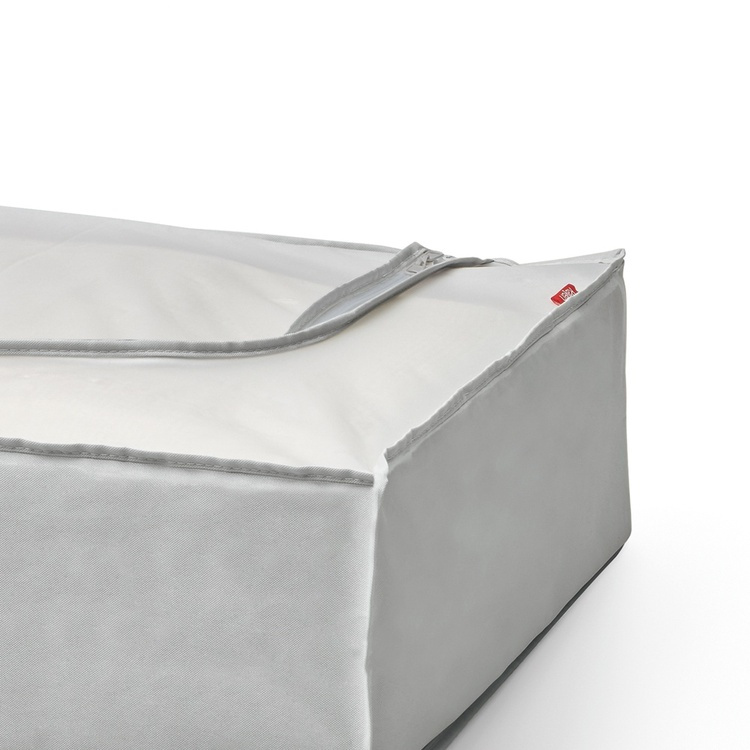Smart under-säng-förvaring för kläder, filtar och täcken som skyddar och håller allt rent från Spanska Rayen. Skyddar mot damm och ohyra och ger ett snyggt och ordnat intryck. När den inte används viks den ihop och tar ingen plats. Går in under de flesta sängar. Smart när du behöver extra utrymme! Med dragkedja och plats för etikett. -