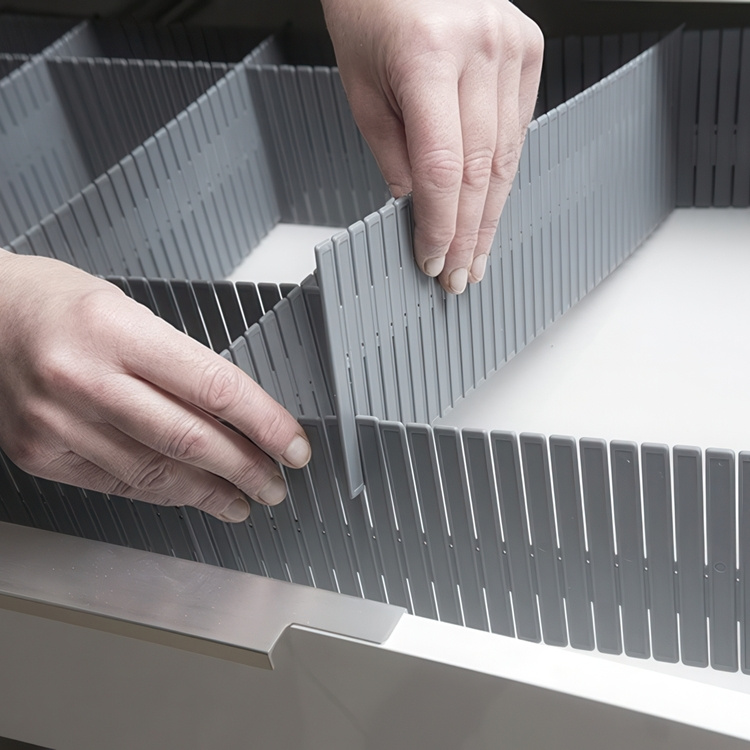 Anpassningsbar praktisk lådavdelare som passar många olika lådor. Klipp avdelarna i olika längder för att skapa rätt mått och rätt storlek på indelningarna. Hjälper att hålla ordning i lådan eller i garderoben. Hitta lätt dina strumpor, skärp eller trosor. Möjliggör många kombinationer för att organisera i lådorna. -