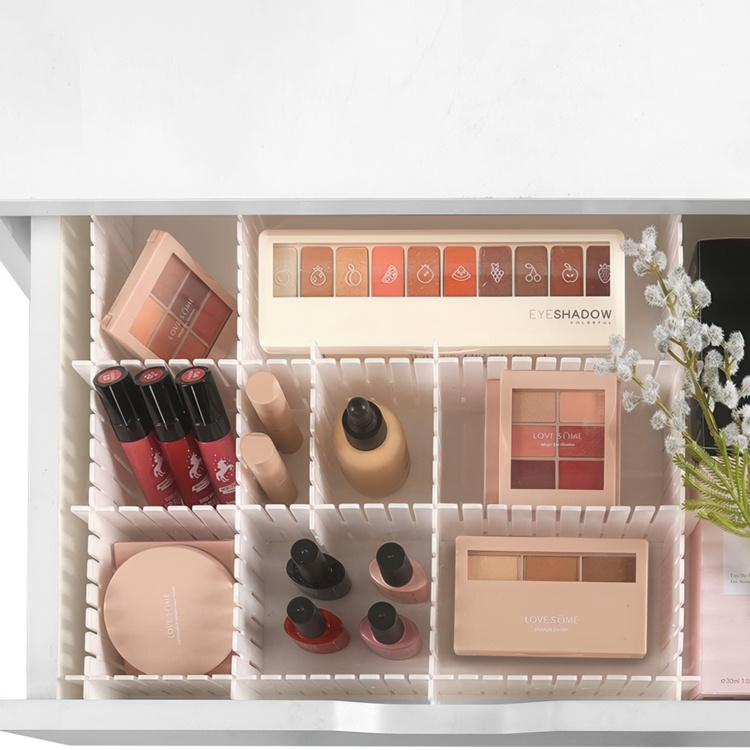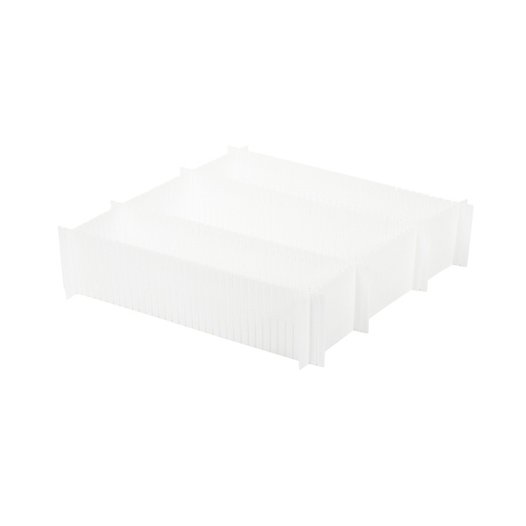 Anpassningsbar praktisk lådavdelare som passar många olika lådor. Klipp avdelarna i olika längder för att skapa rätt mått och rätt storlek på indelningarna. Hjälper att hålla ordning i lådan eller i garderoben. Hitta lätt dina strumpor, skärp eller trosor. Möjliggör många kombinationer för att organisera i lådorna. -