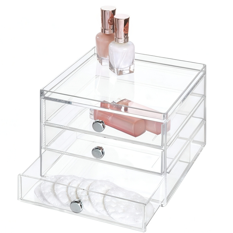 Lådförvaring, 3 låga lådor, ID CLARITY SLIM VANITY DRAWER, 16,5 x 16,5 x H 12,5 cm, Klar