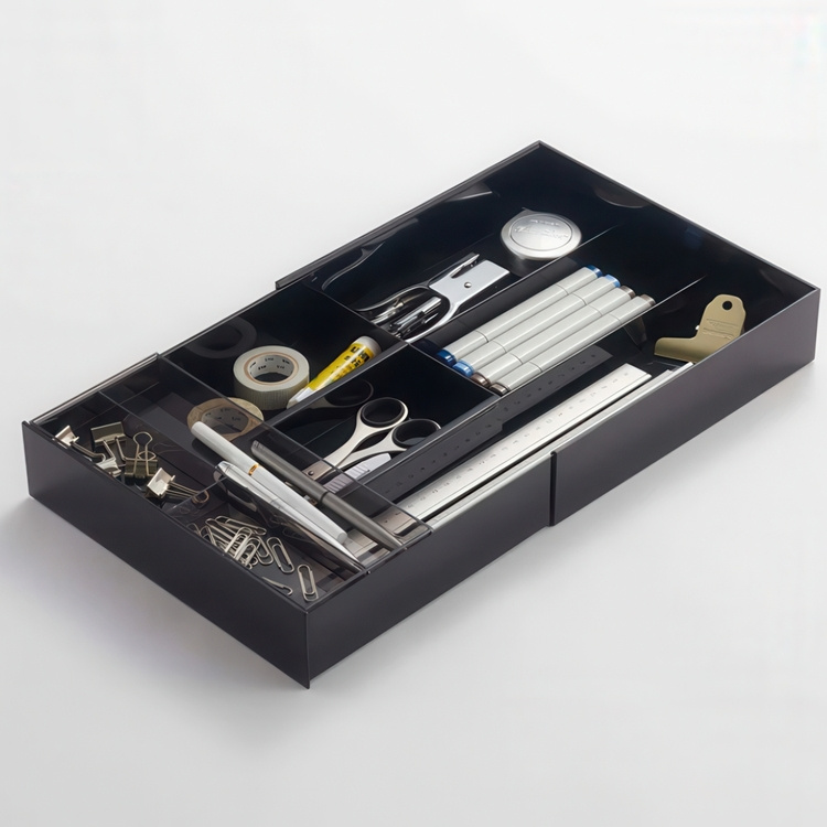 Lådinsats med extra bricka, TOWER EXPANDABLE, 25 ~ 45 x 25 x H 5,5 cm, Yamazaki, Svart