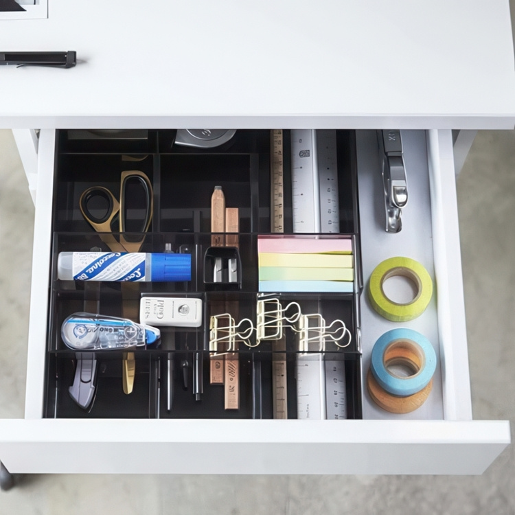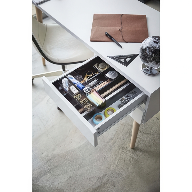 Innovativt med en extra bricka i akryl. Brickan ger dig extra förvaring och flyttas lätt fram och tillbaka över lådinsatsen.