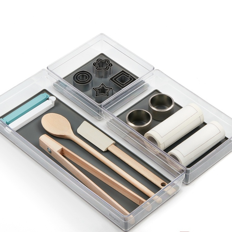 Lådinsatser / förvaringsbrickor, Set med 3 st, BANDEJAS LARGE, Klar / Grå