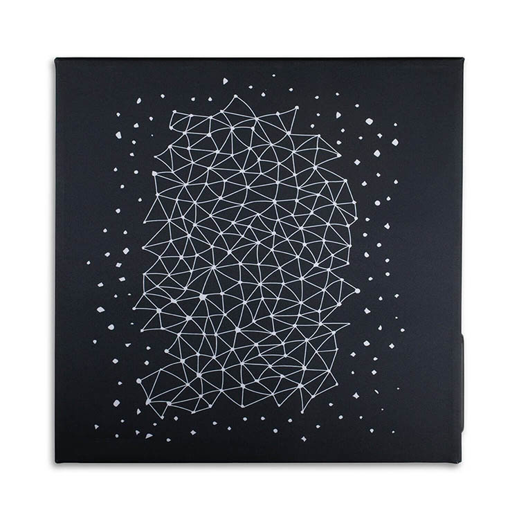 Ljudramen är utformad som en dekorativ tavla i storleken 40 × 40 cm med ett grafiskt svartvitt motiv. Bakom motivet döljer sig en inbyggd högtalare som levererar klart och behagligt ljud. Den diskreta konstruktionen gör att tekniken smälter in i designen, vilket gör att ramen upplevs som en vanlig tavla på väggen. Samtidigt fyller den rummet med musik och blir en naturlig del av inredningen.Trådlös musik med Bluetooth