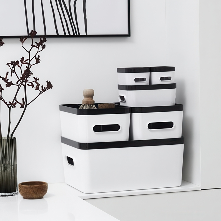 Den höga kanten gör att boxarna lätt kan staplas utan att ramla.