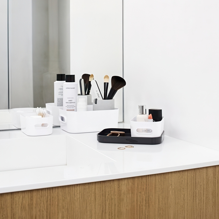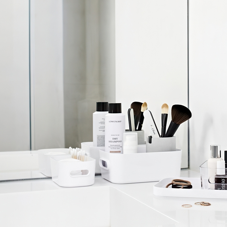 Den höga kanten gör att boxarna lätt kan staplas utan att ramla.