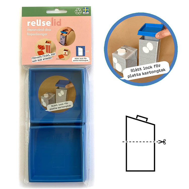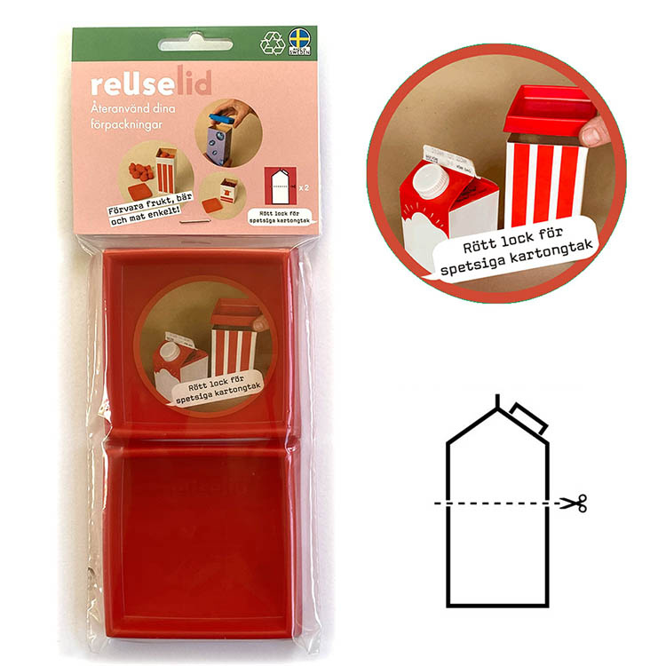 Förvandla din tomma mjölk- eller juicekartong till en smart matbehållare med reUselid. Diska ur kartongen när innehållet är slut, klipp till den och klicka på reUselid – så får du en tättslutande förvaringsbehållare. Locket tål maskindisk och passar enlitersförpackningar för exempelvis mjölk, juice och havredryck.
