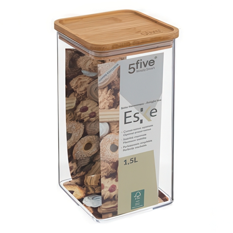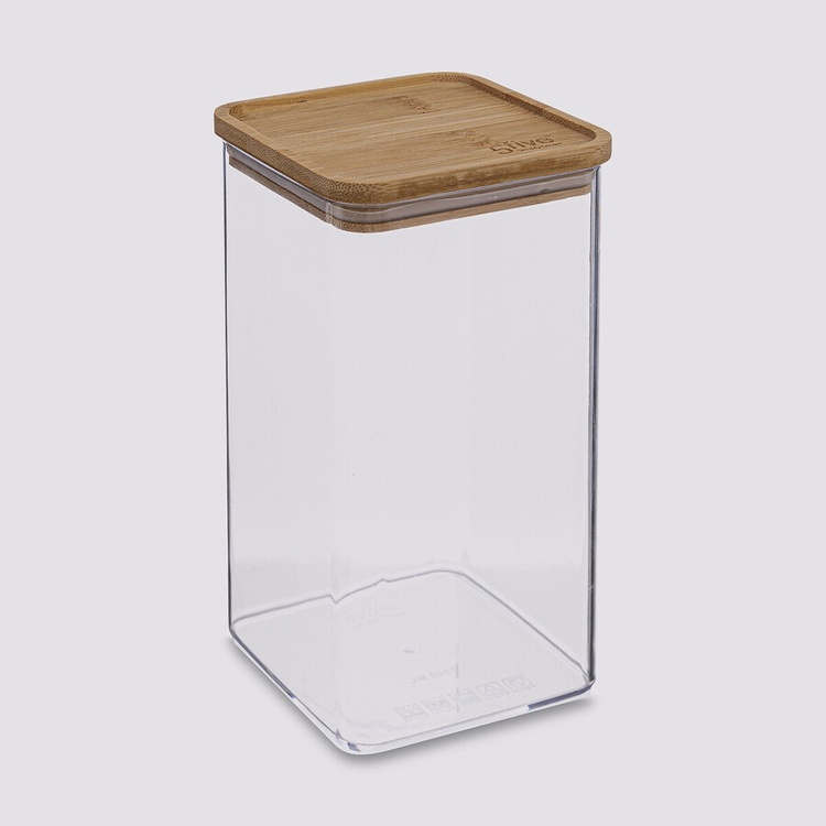 Lufttät behållare, Fyrkantig, 1,5 L, ESKE BAMBOO LARGE 10,4 x 10,4 x H 20,5cm, Klar / Natur
