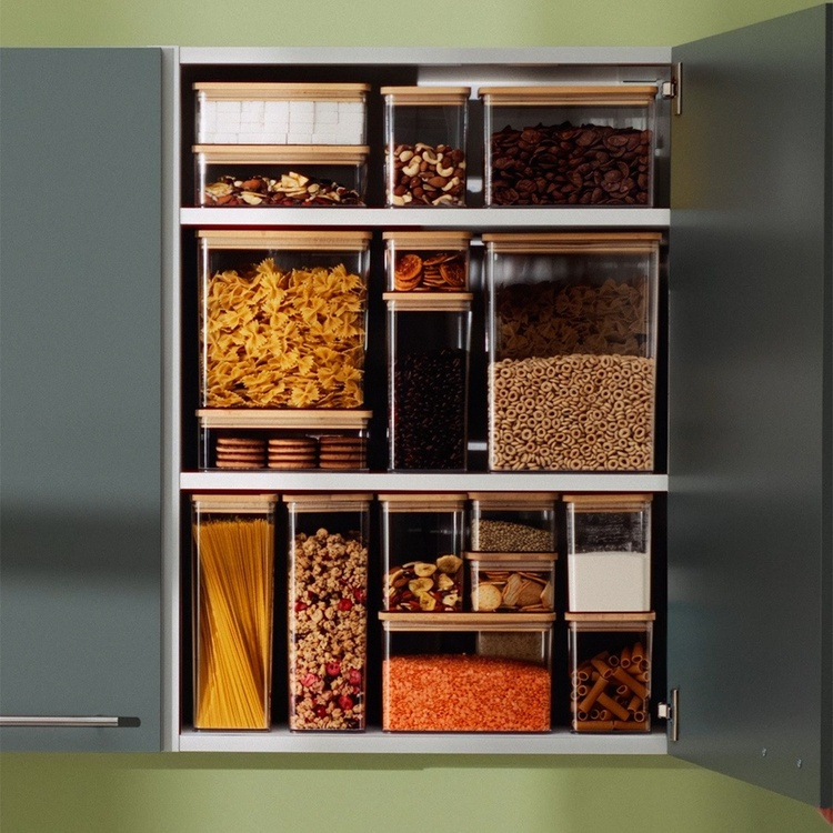 Transparent, stapelbar och lufttät förvaringsburk för torrvaror. Med lock av bambu.