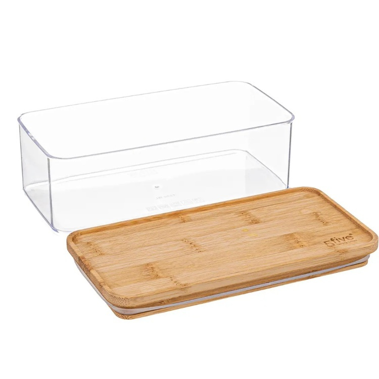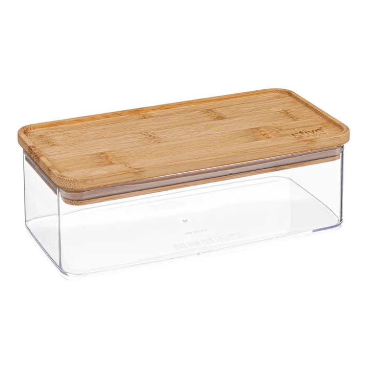 Lufttät behållare, Rektangulär, 1 L, ESKE BAMBOO SMALL, 20,4 x 10,4 x H 7 cm, Klar / Natur