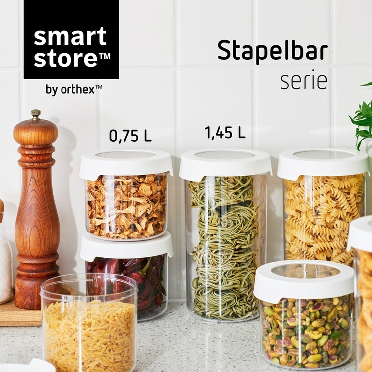 En rund, transparent, stapelbar och lufttät förvaringsburk! Och snygg! Passar utmärkt både till torrförvaring och i kylen. I den här burken kan du förvara t.ex. nötter, riskakor,socker, frön och godis.