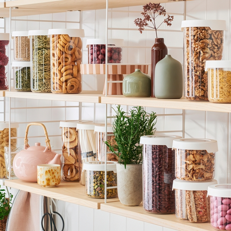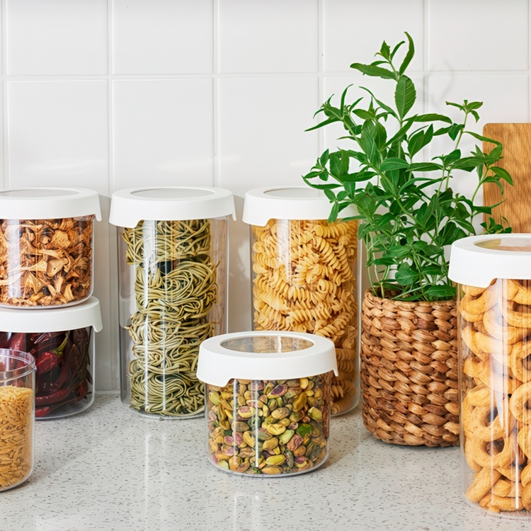 Det lufttäta locket skyddar innehållet från fukt lukt, damm och bakterier. Burkarna tål diskmaskin. -