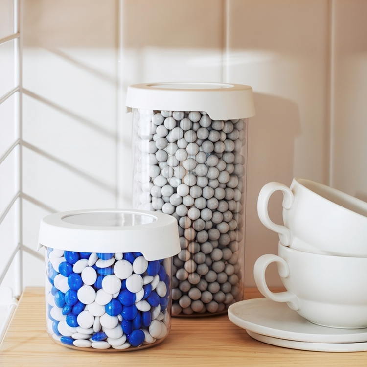 Lufttät behållare, Rund, Stor, 1,45 Liter, VISION, Ø 11,5 x H 20 cm, Klar / Vit