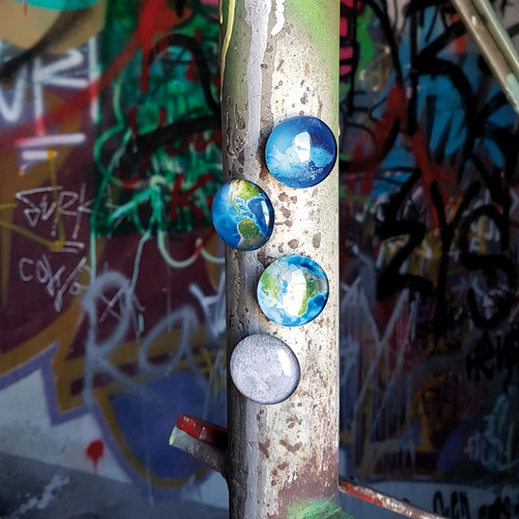 Magneter i glas, Kartbilder, 4 st, PLANET Ø 3,5 cm, Blå