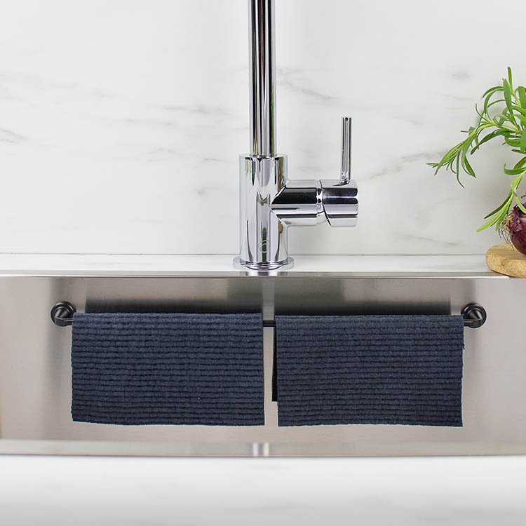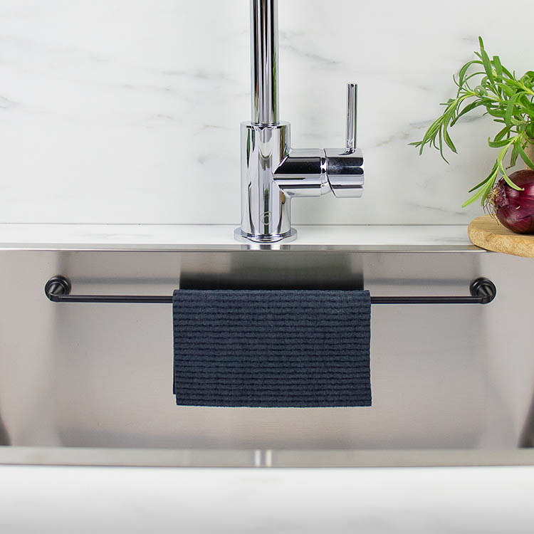 Du behöver inga verktyg för att montera hållaren. Rengör ytan med den medföljande duken, fäst plattorna med 3M-tejp, vänta 30 minuter – och klicka fast hållaren. Monteringen går snabbt och lämnar inga märken.Flexibel placering för både handdukar och disktrasor