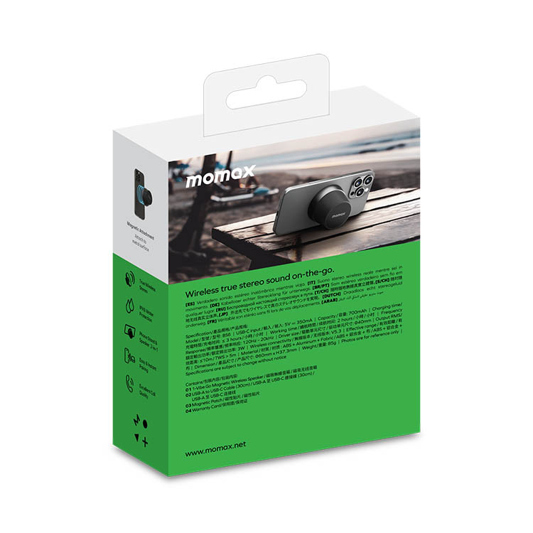 Den magnetiska mobilhögtalaren är en kompakt, trådlös högtalare som kombinerar smart funktionalitet med stilren design. Med magnetfäste för enkel montering på mobiltelefoner eller metallytor, IPX6-klassat vattenskydd och 12 timmars batteritid är den perfekt för användning i vardagen. En smidig högtalare som levererar stort ljud – utan att ta upp plats.