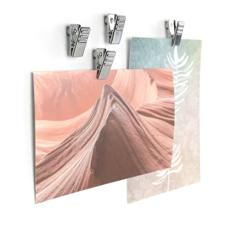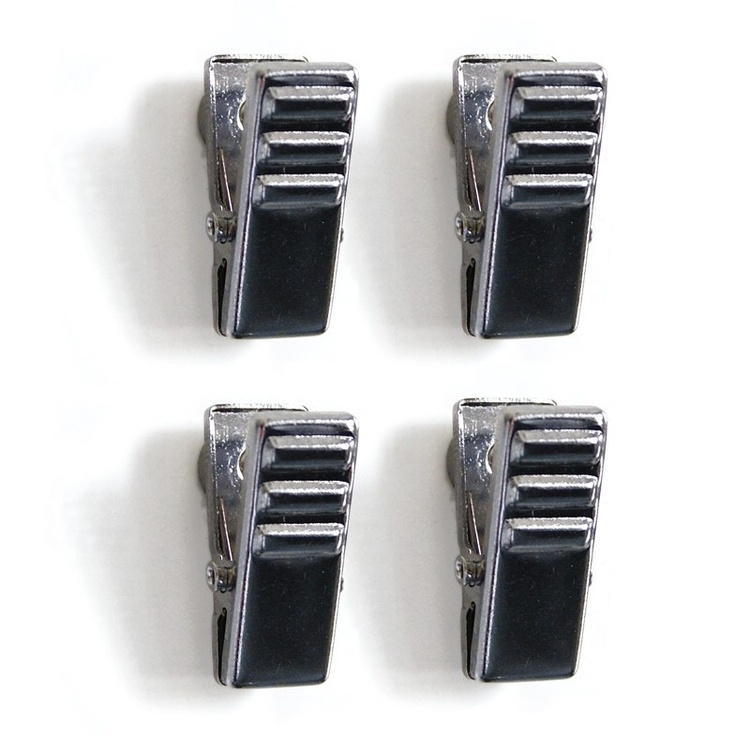 Liten klämma med stark magnet på baksidan. 4 stycken praktiska magneter i ett paket.