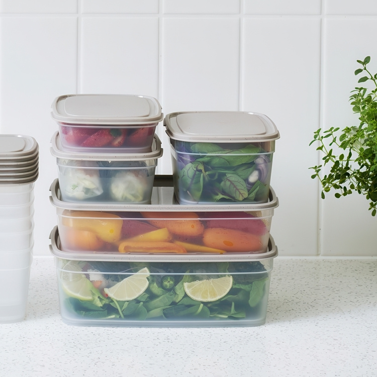 Lufttät behållare som kan staplas i varandra om dom är tomma och på varandra i kylskåpet.